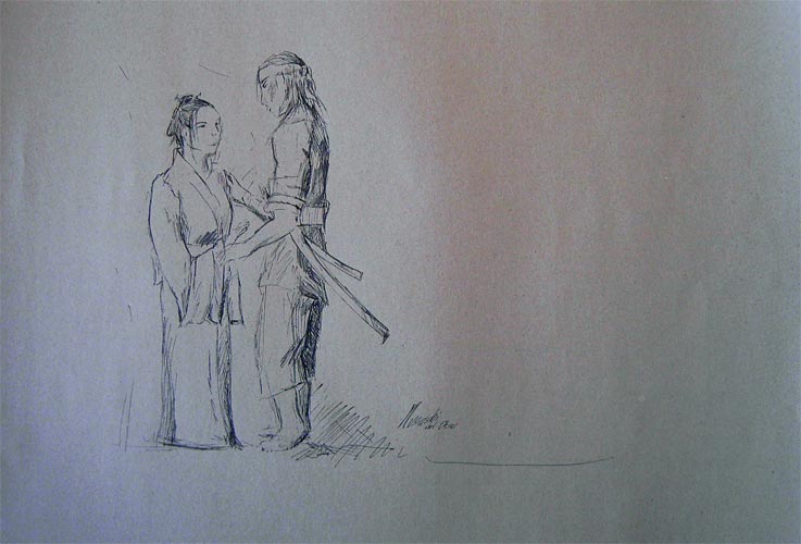 Ein Bild, dass ich zum Buch Musashi gezeichnet habe. Große Bewunderung. Die Zeichnung selbst nahm nicht sehr viel Zeit in anspruch. Eher sowas wie eine schnelle Skizze. Aber manchmal haben auch solche schnellen Zeichnungen ihren Reiz.